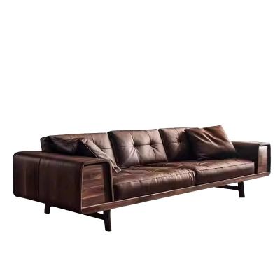 新中式实木大直排沙发高端北美黑胡桃木别墅客厅高端真皮加宽沙发